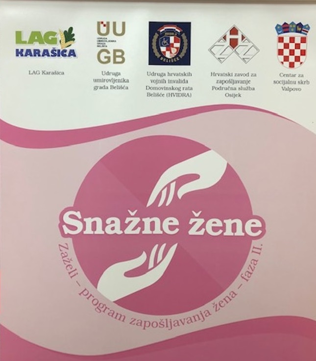 U petak, 4. veljače 2022. godine, u Hotelu Petrijevci održana je završna konferencija projekta "Snažne žene". Projekt vrijedan 1.114.260,00 kn, koji je Nositelj projekta,Udruga hrvatskih vojnih invalida Domovinskog rata Belišće potpisala s Ministarstvom rada i mirovinskog sustava, financiran je u 100% iznosu iz Europskog socijalnog fonda, Programa „ZAŽELI- PROGRAM ZAPOŠLJAVANJA ŽENA - FAZA II“ operativnog programa učinkoviti ljudski potencijali koji traje 14 mjeseci, od 07. siječnja 2021. do 07. ožujka 2022. godine. Udruga hrvatskih vojnih invalida Domovinskog rata Belišće projekt provodi u suradnji s partnerima, Udrugom umirovljenika grada Belišća, Hrvatskim zavodom za zapošljavanje, Centrom za socijalnu skrb Valpovo te Lokalnom akcijskom grupom Karašica koja je zadužena za administraciju i upravljanje. Ovim projektom na razdoblje od godinu dana zaposleno je 12 teže zapošljivih žena koje su pružale potporu i podršku 78-oro starijih i nemoćnih osoba. Na završnoj konfereciji, nazočnima su se u ime partnera i nositelja projekta obratili : predsjednik Lag - a Karašica Ivan Vrbanić, predsjednik Udruge Hrvatskih vojnik invalida Pavo Milekić, predsjednik Udruge umirovljenika grada Belišća Radoslav Vuksanić, Voditeljica ispostave Valpovo Hrvatskog zavoda za zapošljavanje Lidija Vidošić te koordinatorica na projektu Beata Rebrina koji su iznijeli rezultate o provedbi projekta u nadi kako će se ova vrlo uspješna suradnja nastaviti i nadalje, u najavljenoj "Fazi III - Zaželi - Program zapošljavanja žena." Ovim putem Ženama projekta uručena su Uvjerenja o završenoj školi za zanimanje pomoćni kuhar koje su stekle u sklopu projekta kako bi postale konkurentnije na tržištu rada.